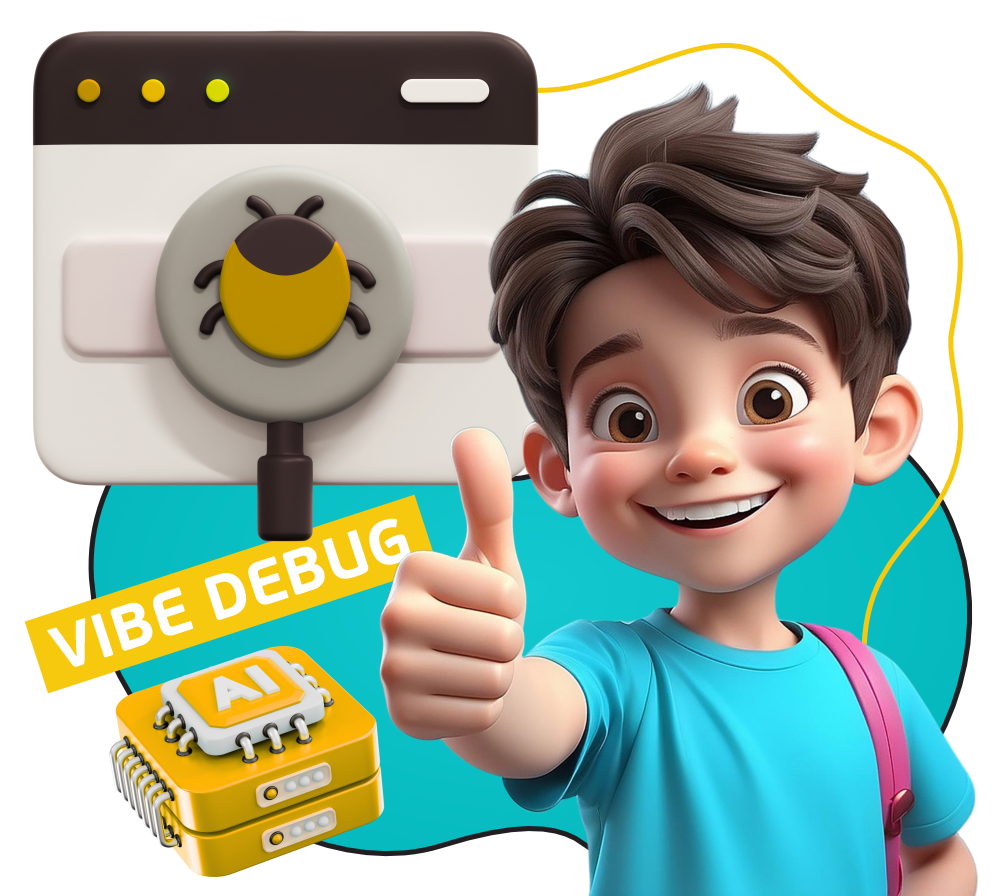 Мы используем подход Vibe Debug — это современный способ тестирования с помощью ИИ и визуальных инструментов. Он делает процесс понятным и даже увлекательным, без скучных таблиц и сложных терминов.